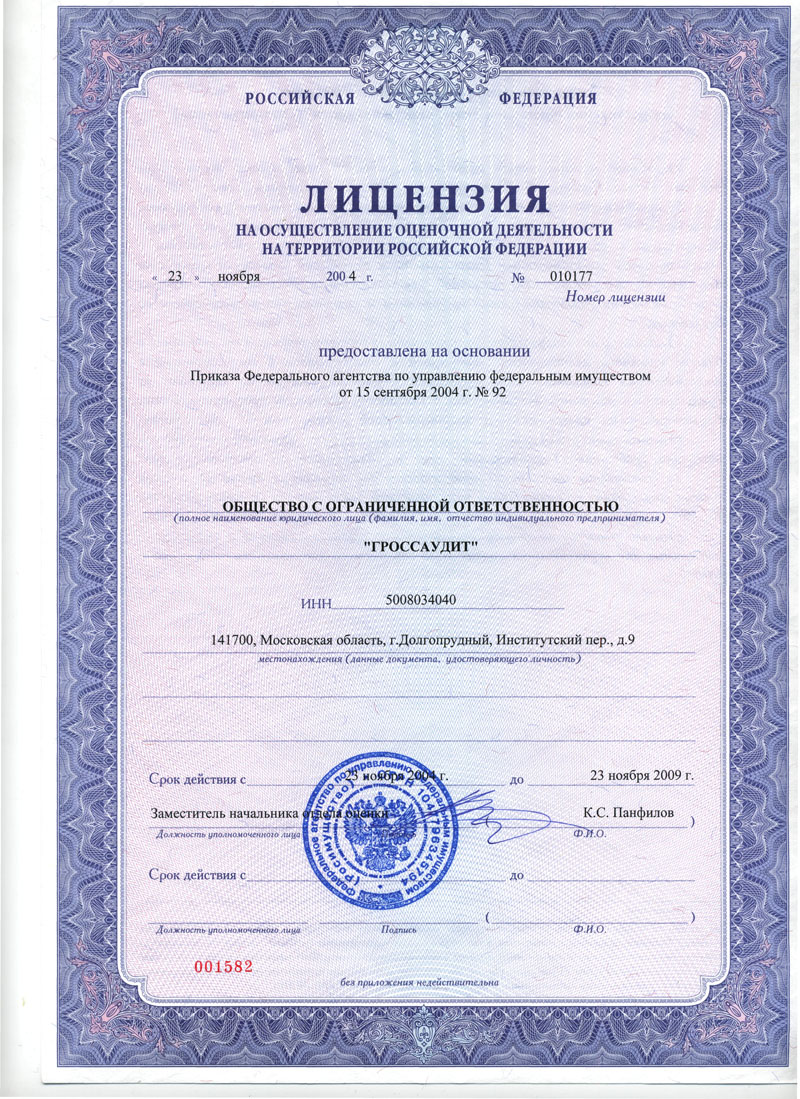 Лицензии на оценочную деятельность